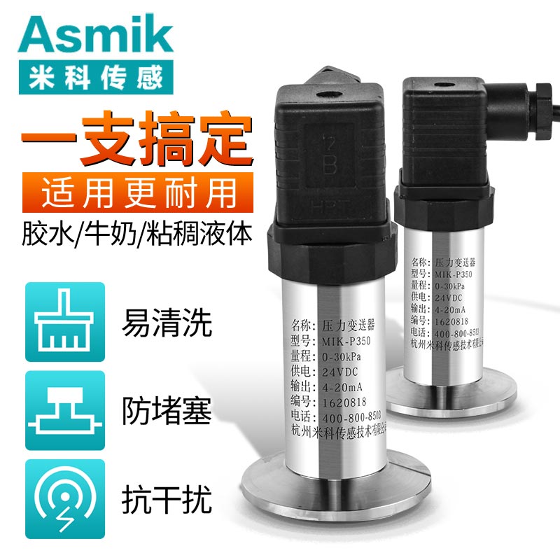 MIK-P350系列平面膜結(jié)構(gòu)壓力變送器選用德國進(jìn)口擴(kuò)散硅芯體,采用平面膜直接感受壓力。傳感器接口有卡箍式,M27×2,法蘭式可供選擇。輸出信號(hào)有電壓、電流、頻率信號(hào)等可選擇,傳感器平膜片防止了結(jié)垢,不衛(wèi)生及粘稠液體堵塞等問題。廣泛應(yīng)用于食品、醫(yī)藥、衛(wèi)生及釀酒工業(yè)等部門。