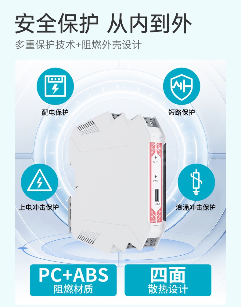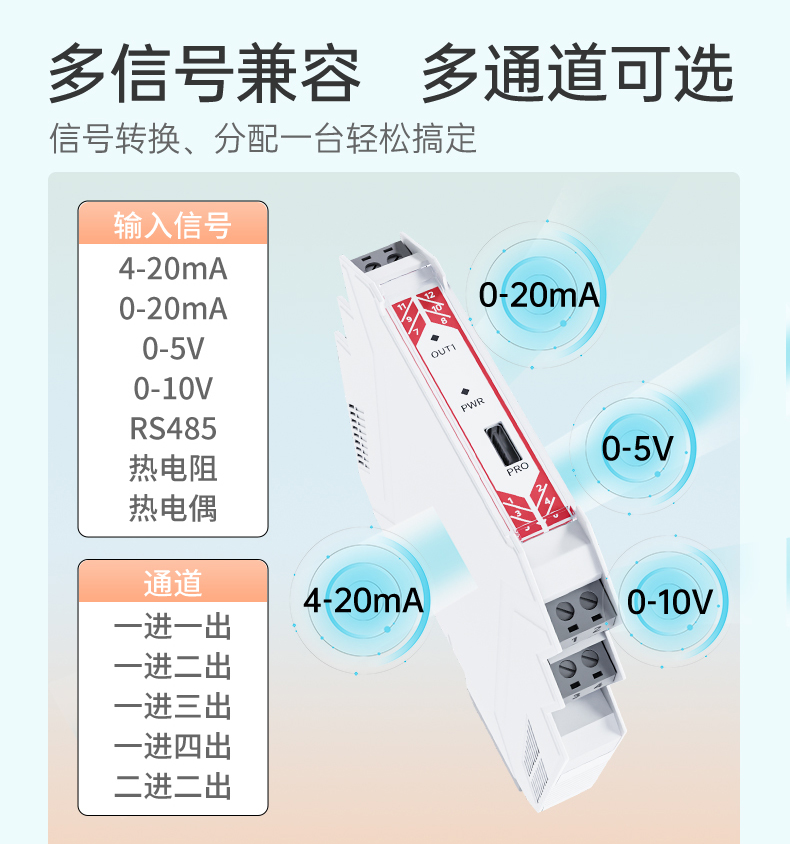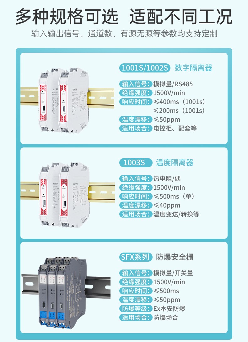 適用場合:隔離器給二、三線制變送器提供隔離的工作電源,將變送器產(chǎn)生的電流信號隔離并轉(zhuǎn)化為其他儀表所需的信號,實現(xiàn)輸入、輸出、電源之間的三端隔離,從而提高工業(yè)過程自動控制系統(tǒng)的抗干擾能力,保證系統(tǒng)的穩(wěn)定性和可靠性。隔離器可與各類儀表、DCS、PLC 等設(shè)備配套使用,在石油、石化、制造、電力、冶金等行業(yè)的重大工程中有著廣泛應用。