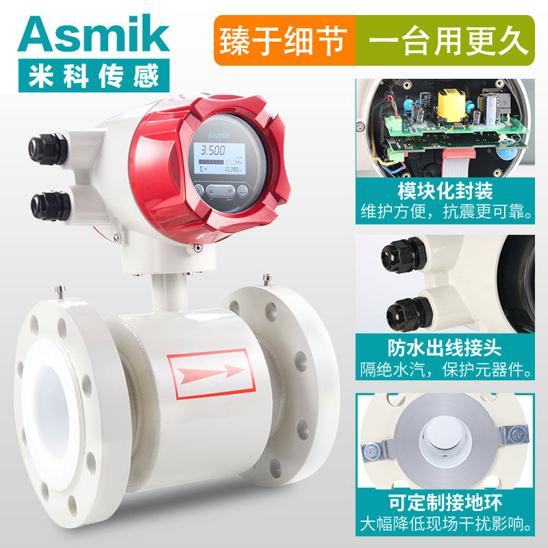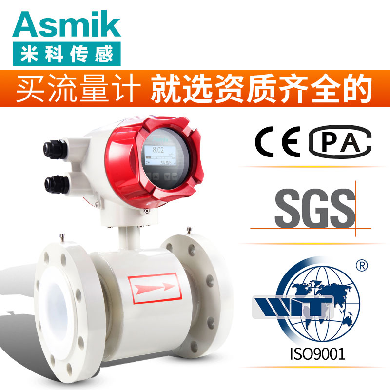 一體式電磁流量計是基于法拉第電磁感應定律工作的,用來測量電導率大于30μS/cm導電液體的體積流量,是一種測量導電介質體積流量的感應式儀表。除可測量一般導電液體的體積流量外,還可用于測量強酸強堿等強腐蝕液體和泥漿、礦漿、紙漿等均勻的液固兩相懸浮液體的體積流量。