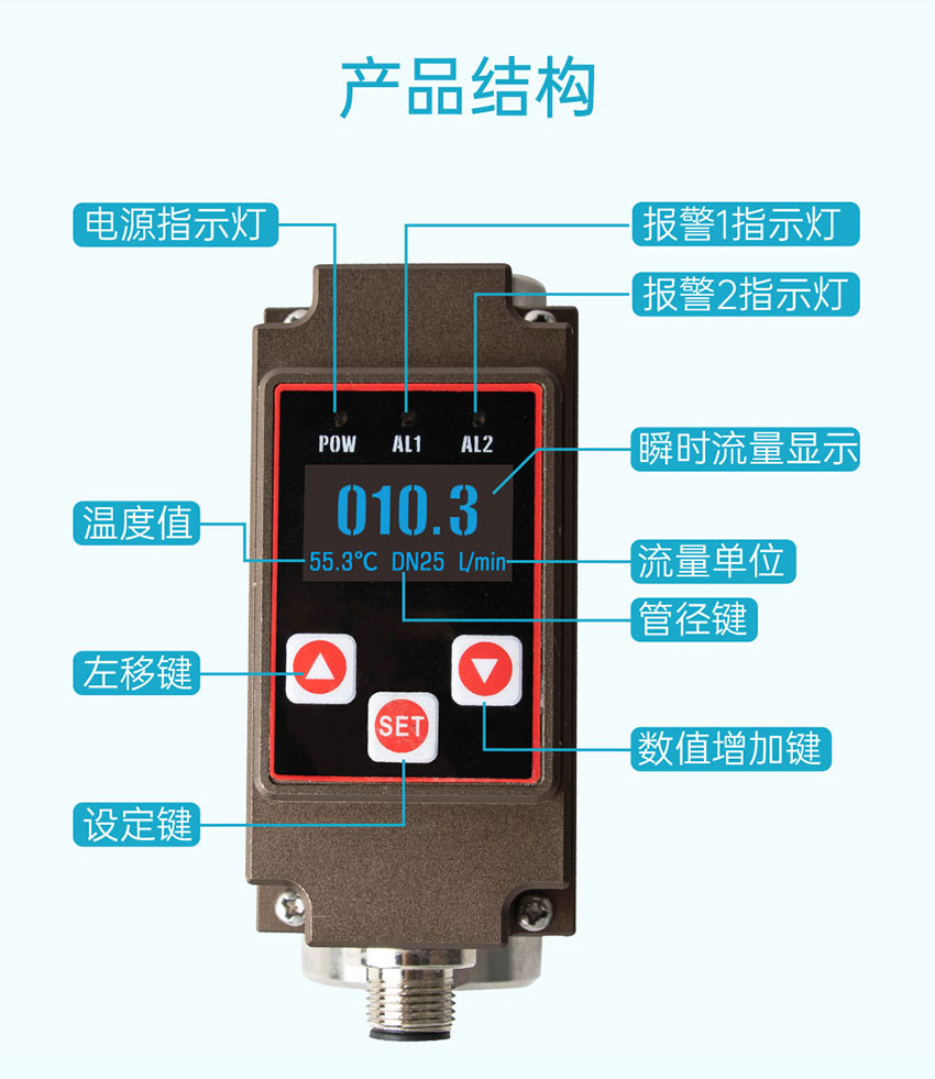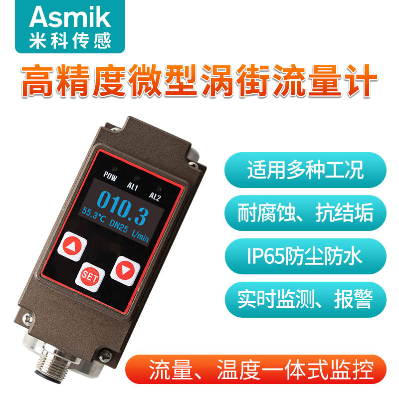 微型渦街流量計結(jié)構(gòu)簡單、精確度高、安裝維修使用方便,可對管道中的液體流量及溫度情況進(jìn)行實(shí)時監(jiān)控,支持流量和溫度(4~20)mA 信號或 485 通信、報警開關(guān)輸出,并采用 OLED 實(shí)時顯示流體流量及溫度,實(shí)現(xiàn)管道當(dāng)中流量溫度一體式的監(jiān)控功能。本產(chǎn)品廣泛應(yīng)用于石油化工、電力、治金、鋼廠、造紙、食口品加工、水處理、電池廠等行業(yè)。